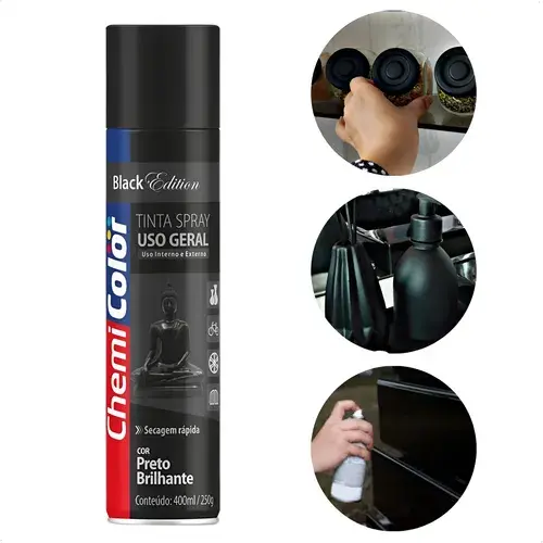 Tinta Spray Uso Geral 400ml Preto Brilhante CHEMICOLOR